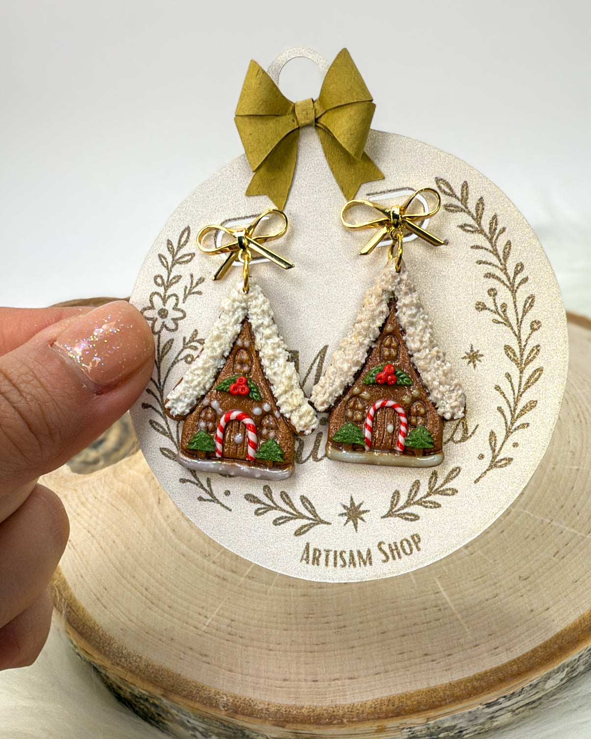 Pendientes de casa navideña: joyería navideña de arcilla hecha a mano